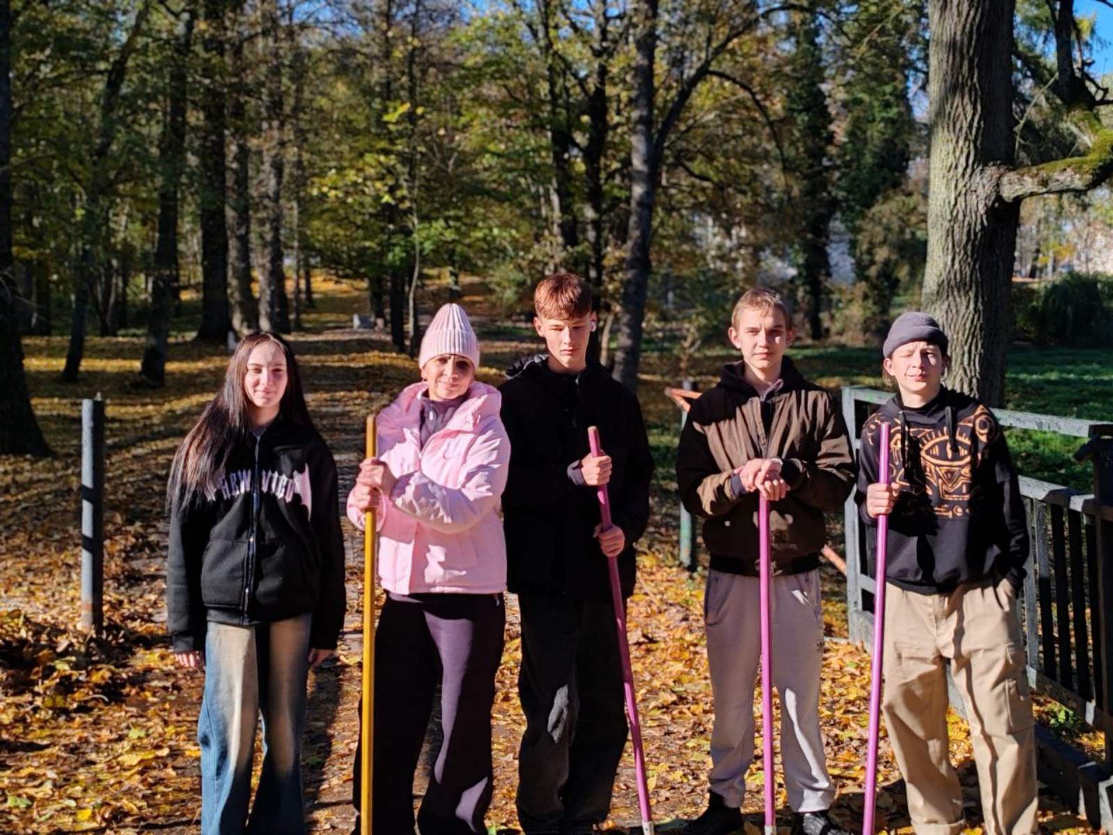 листву, срезали низко растущие ветки деревьев, благоустраивали дорожки. А также учащиеся